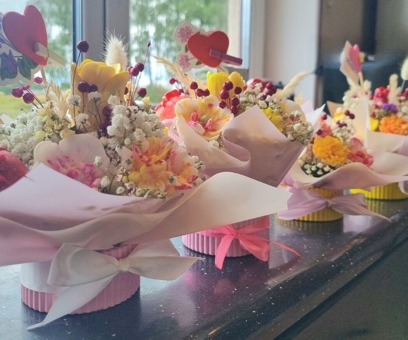 Katra dalībniece dodas mājās ar elegantu, smaržīgu ziedu kompozīciju, kas rotās mājas vai būs lieliska dāvana kādam īpašam cilvēkam.